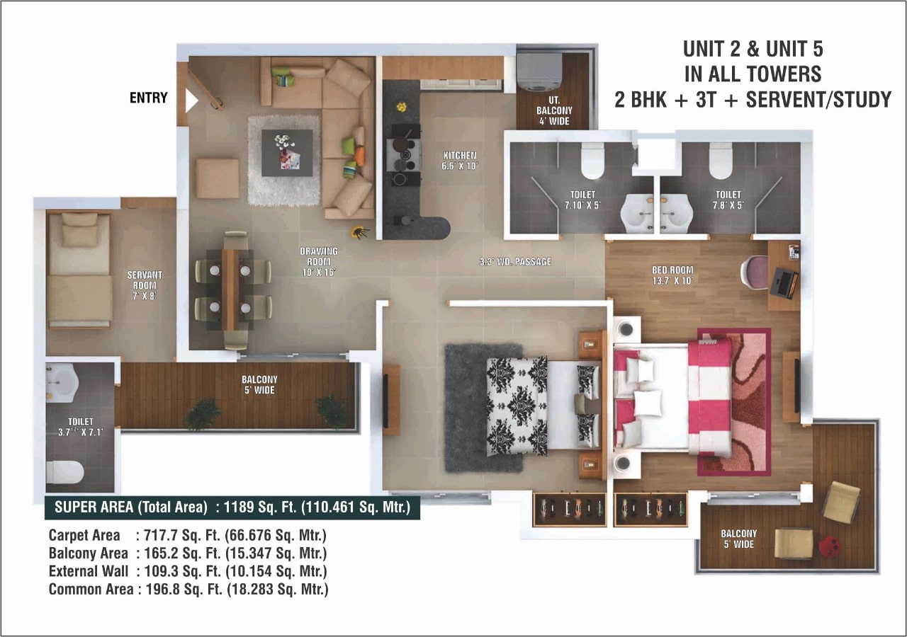 | 2 BHK + STUDY | 1189 SQ.FT. | |